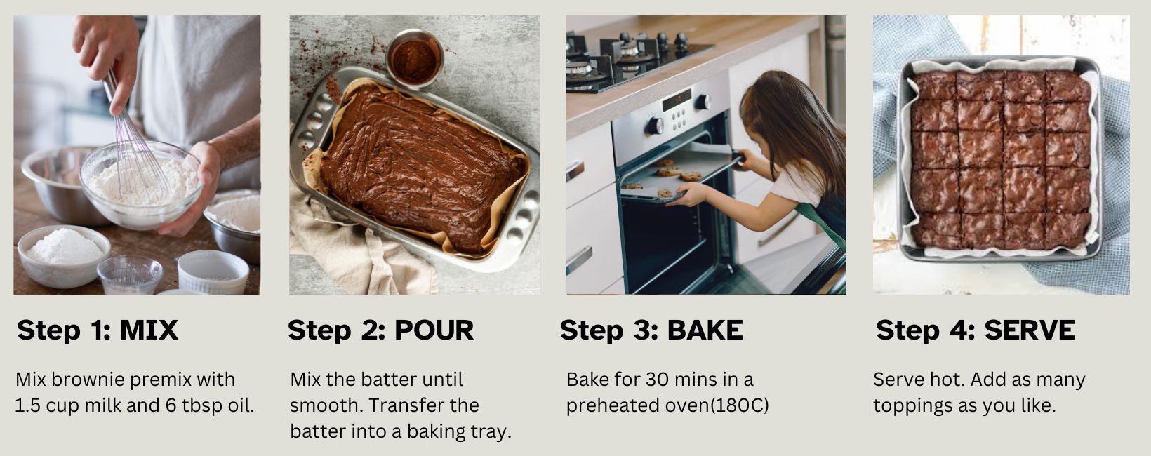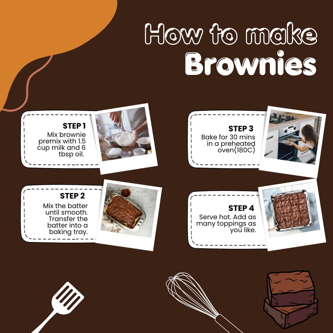 Get creative and bake new recipes with our instant brownie premix. Add as many toppings as you like and impress your guests.