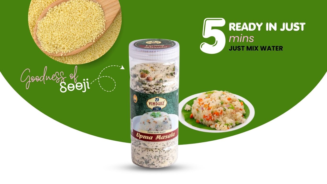 Relish the goodness of sooji with our Upma premix—nutritious, light, and ready to cook for a delicious, wholesome breakfast in just minutes!